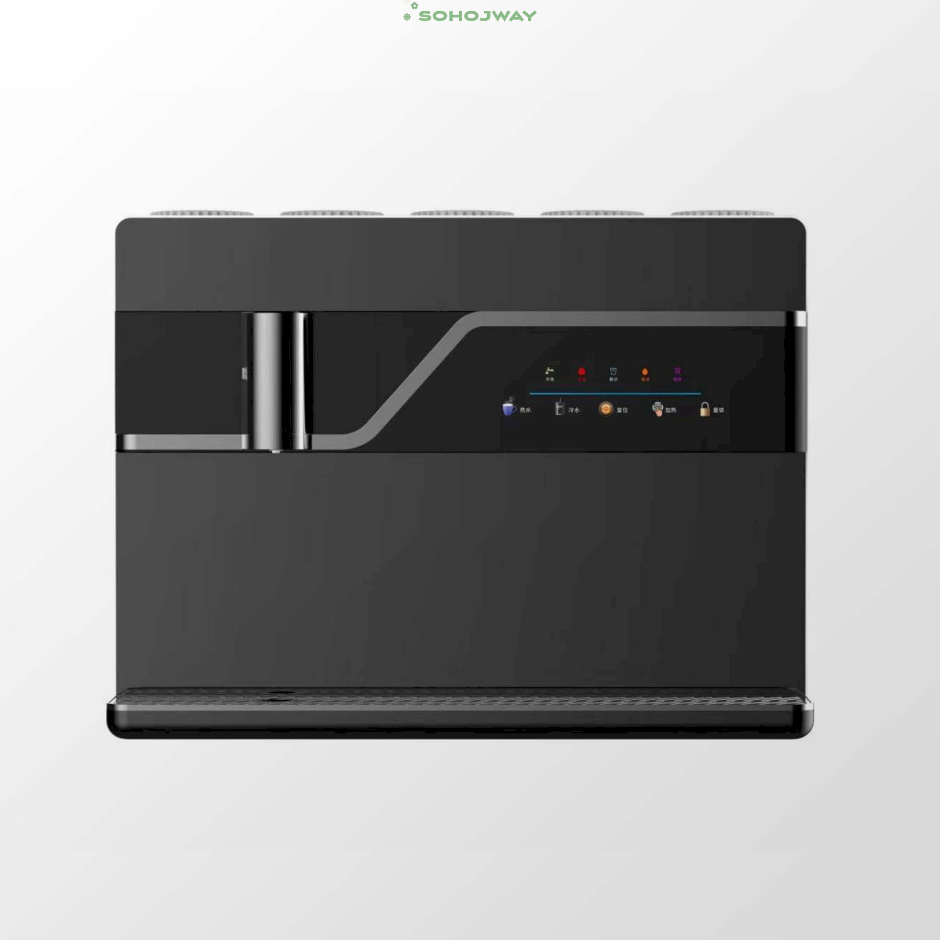 Five stage Counter Top RO Water Purifier System designed for where feed water has very low water pressure or where the source water contains higher than normal amounts of dissolved solids. RO Purifier System utilizes the unique properties of a semi-permeable membrane to allow fluid to pass while restricting the flow of dissolved ionic material. This RO Water Purifier pressure applied to impure water on the side of such membrane materials, pure water will pass through, leaving most of the impurities behind. The rejection of the dissolved ionic material is a function of both molecular weight and ionic charge. For example, we can expect a nominal 90% rejection of sodium chloride, which means that the product water passing through the membrane will have a concentration of salt approximately one-tenth that of the feed water. The rejection of calcium carbonate (hardness) will be near 95%, while most metallic salts will be rejected at a rate of approximately 98% to 99%.