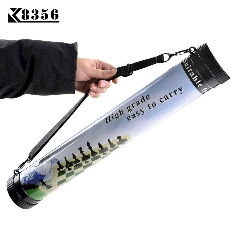 • Easy Carry Ches set-2018 1Set Traveling Portable Chess Game PU Chessboard Plastic ChessPieces PVC Chess Cylinder Adjustable Length Strap Easy Carry